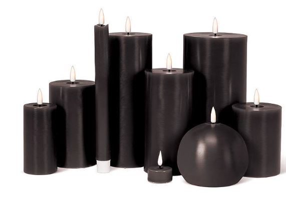 Create a warm, ambient atmosphere with these Luxlite Black LED  Candles. Designed in Sweden, this all wax, flameless candle features a realistic, flickering 3D LED flame, with a run time of over 15 hours. Featuring an 8 hour timer and run by 2 x AA batteries, this candle is a complement to any decor. Pair with other LED candles to create a cozy aspect to your home.  Available in different colours, styles and sizes.