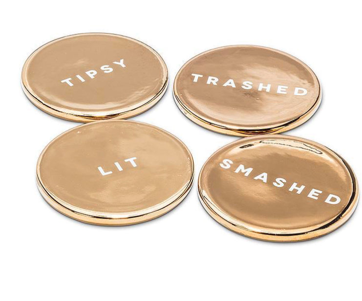 Have fun labelling your friends with their "best" qualities with this classy yet sassy set of 4 Drunk Expressions Coasters. Crafted out of ceramic and cork, these fancy, funny coasters are sure to get some laughs out of your guests.